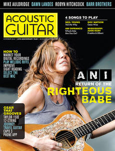 Kim said that she prefers slimmer acoustic guitars. “I think a lot of slimmer body acoustic guitars can be more comfortable for women to play, because they don’t stick out as much when resting against your chest,” she said. “This could just be a matter of personal preference, but I had a slim round-back Ovation that was super comfortable to hold, and then when I didn’t have that guitar anymore and was borrowing a ‘regular’ style acoustic guitar, it just felt really odd, like the side of the guitar was jutting in uncomfortably. So I think slimmer guitars for bustier ladies works.”